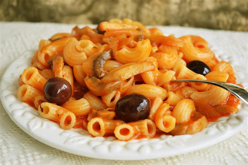 Paste cu ciuperci, masline si sos de rosii