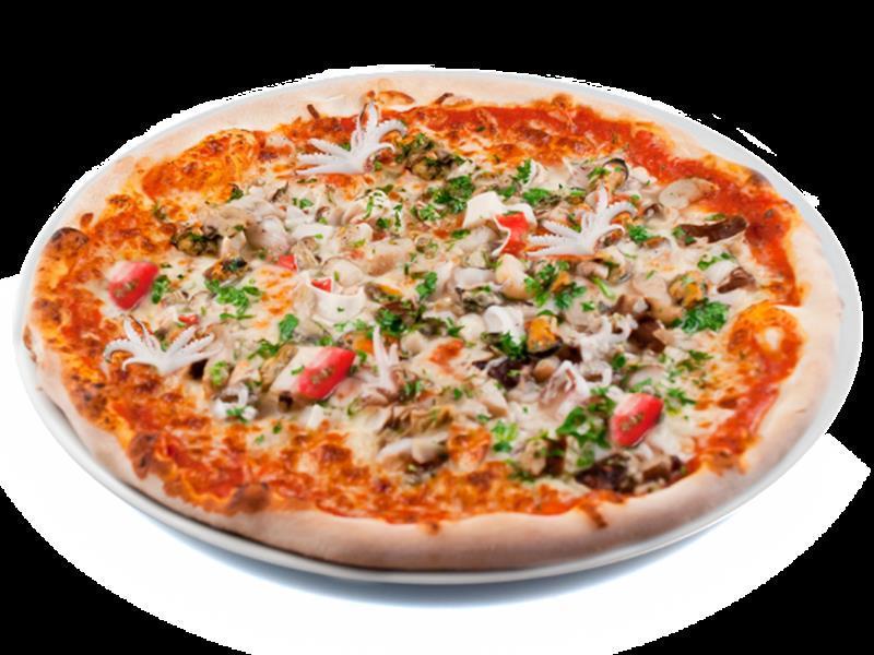 Pizza cu fructe de mare si legume