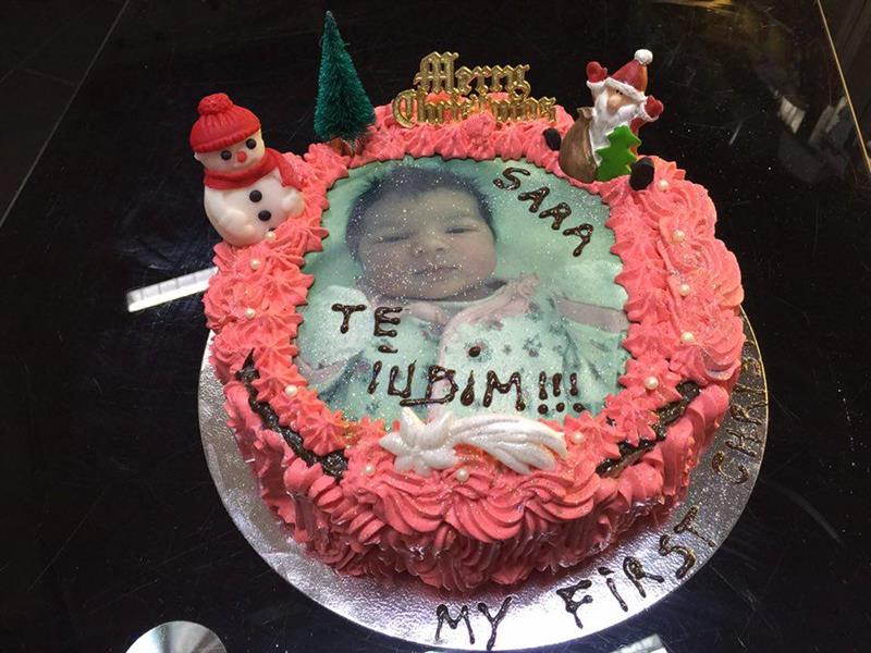 Orice fotografie din zahar comestibila care o folosim ca decor exterior pe torturi, are un cost de 15 lire bucata si nu este inclusa in preturile expuse pe web site la nici un tip de tort.