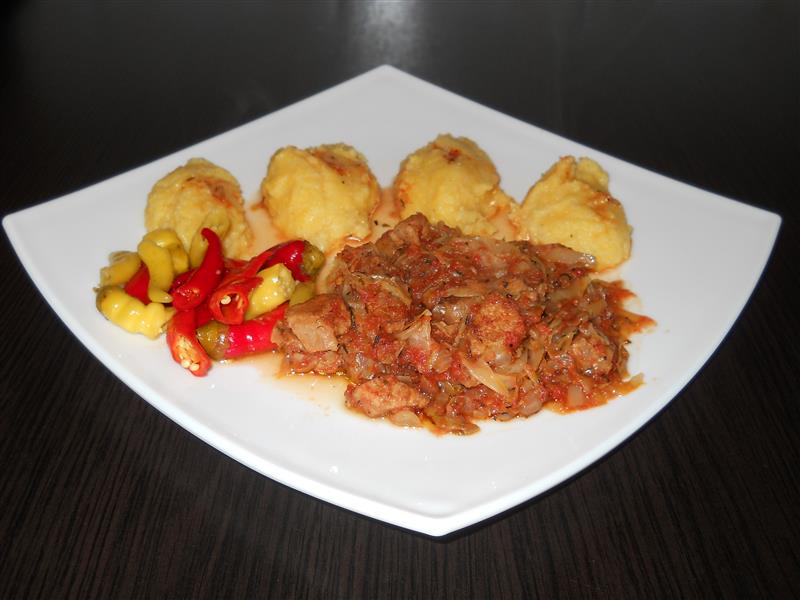 Varza calita cu carne de porc si mamaliguta
